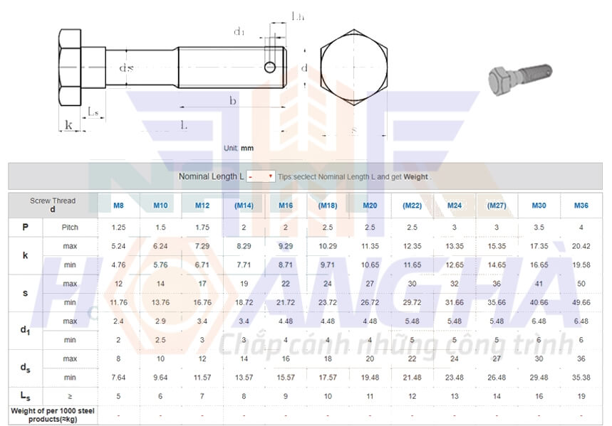 Bu lông lục giác GB 24 – 1976