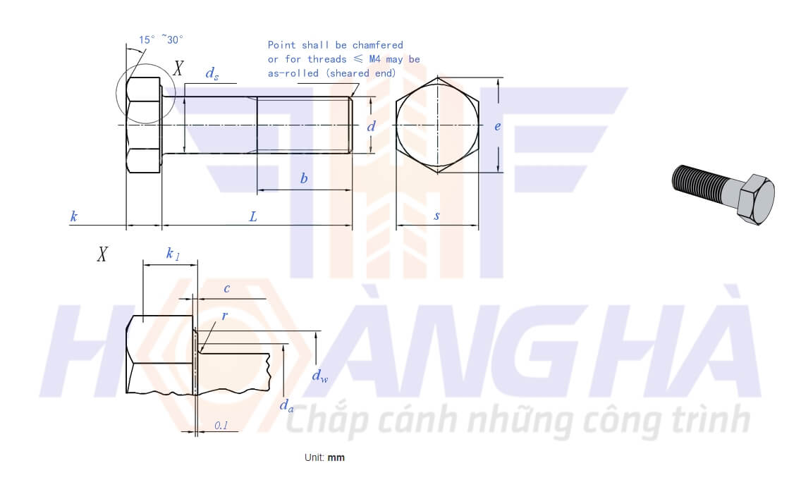 DIN 931 (-1) – 1987 – Bu lông lục giác