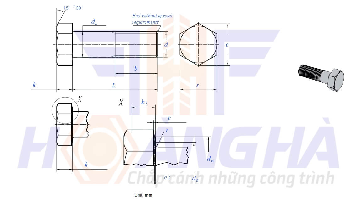 DIN EN ISO 4016 – 2011 – Bu lông lục giác