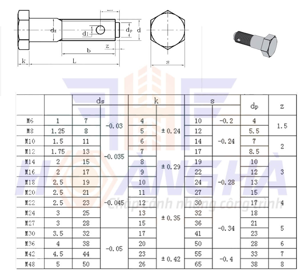 GB 28 – 1976 – Bu lông lục giác có lỗ ở thân