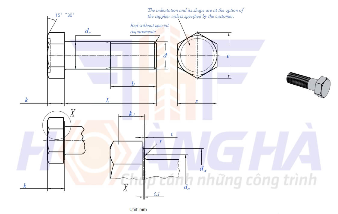 | k | Nominal Size | 18.7 | 21 | 22.5 | 25 | 26 | 28 | 30 | 33 | 35 | 38 | 40 | |