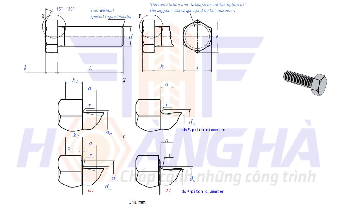 GB /T 5781 – 2000 – Bu lông lục giác