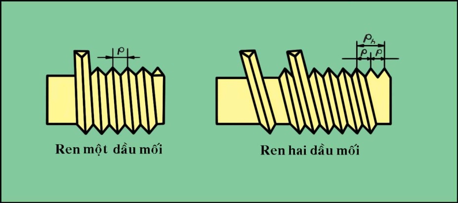 – Số đầu mối là số đường xoắn ốc tạo thành ren. Đối với ren nhiều đầu mối thì bước xoắn là tích của số đầu mối và bước ren: Ph = n x P. Nếu là ren một đầu mối thì Ph = P.